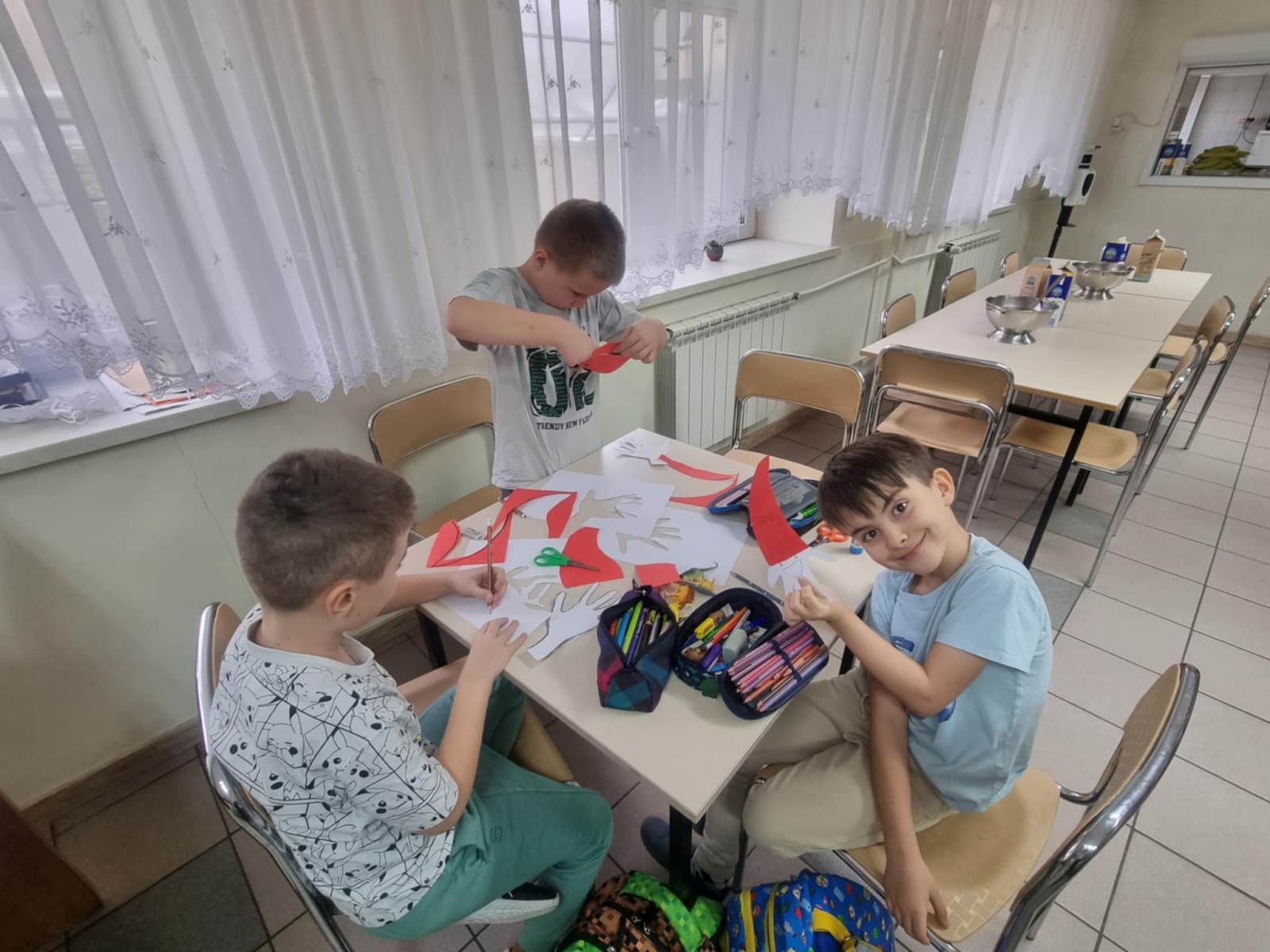 Grupa świetlicowa wykonała piękne prace plastyczne pt. ,,Mikołaje”. Zwykła dłoń może zmienić się w piękną pracę, wystarczy ja odrysować, dodać czerwoną czapkę, dorysować oczy, usta i nos. Tak powstaje nasz wyjątkowy, własnoręcznie zrobiony Mikołaj, który przypomina, że magia świąt zaczyna się w małych, kreatywnych pomysłach.